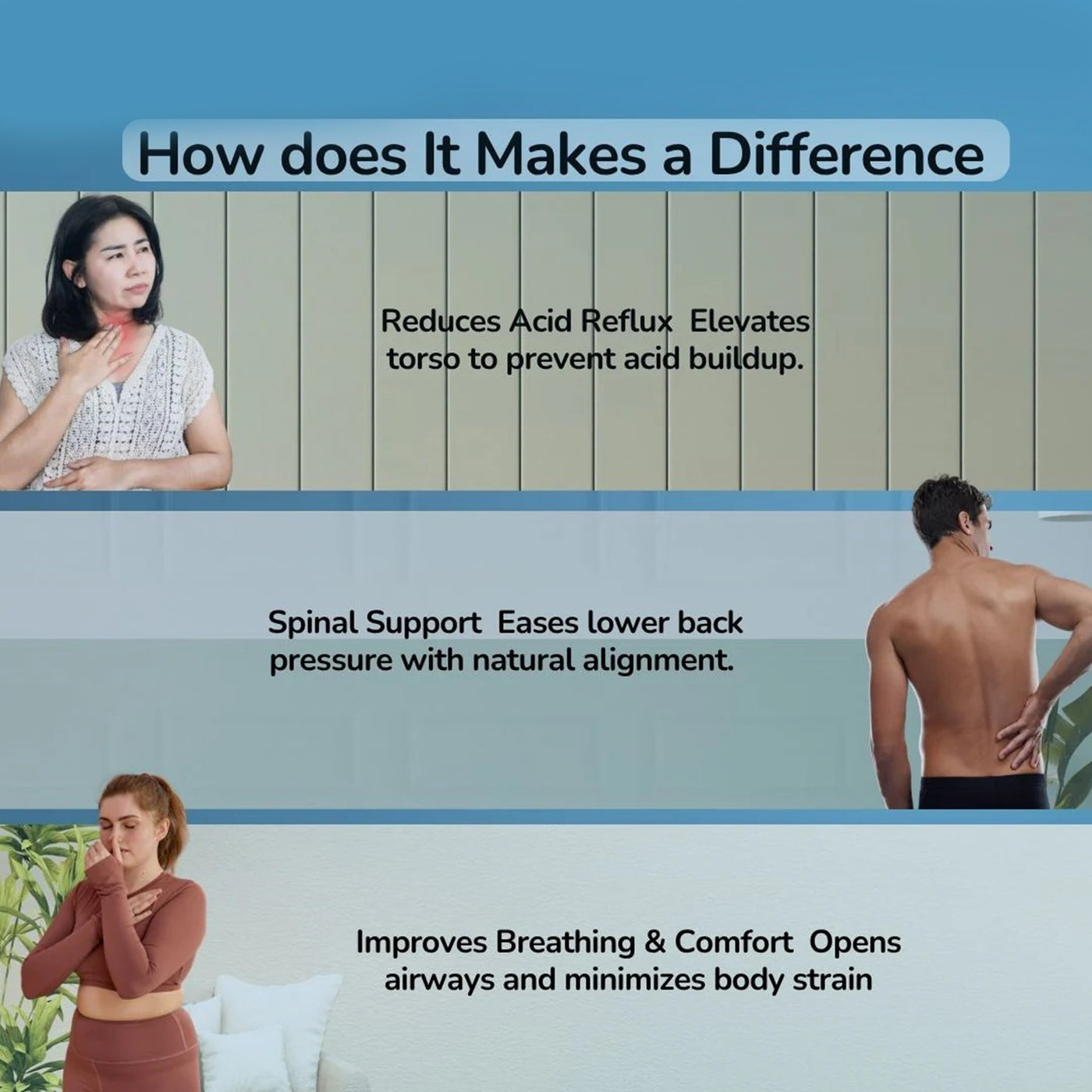 Inclined support keeps your chest and airways more open, which can help reduce snoring, congestion, and acid reflux symptoms.